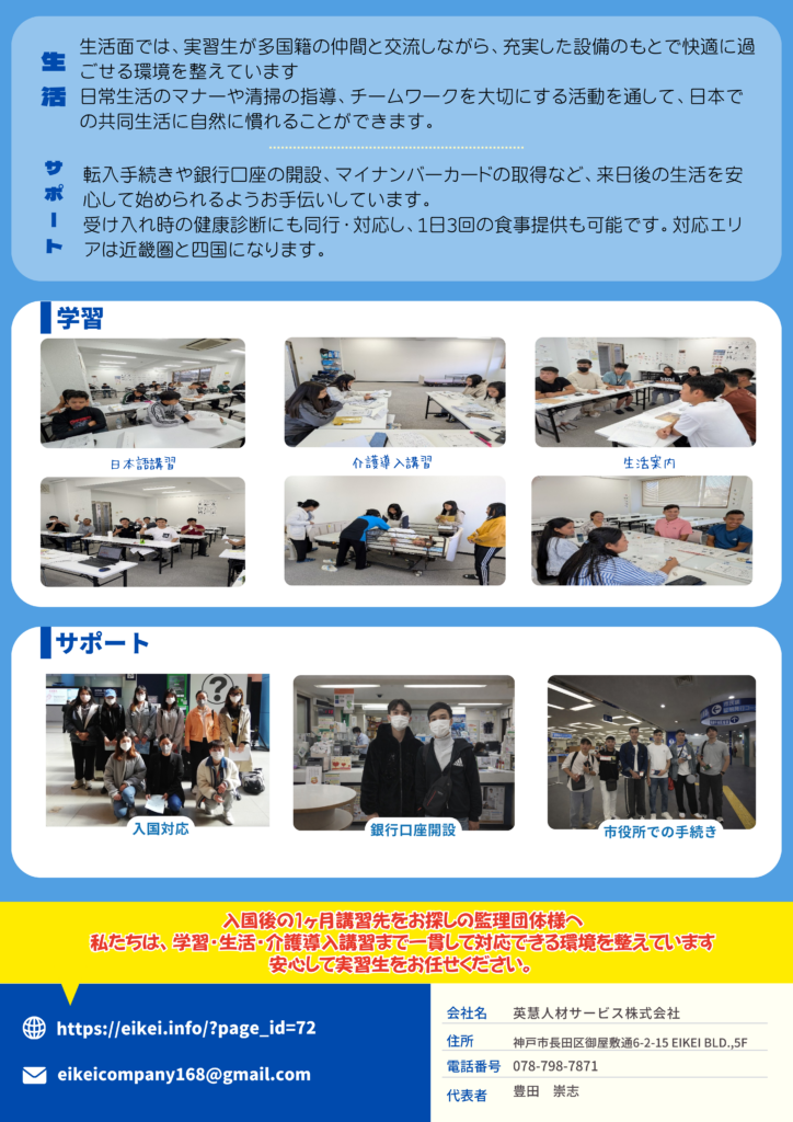 日本語・生活指導・就労マナーまで対応可能です。